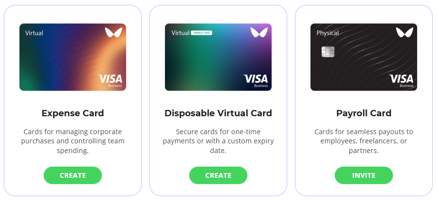 - Business / Corporate cards: una categoria dedicata alle carte aziendali, virtuali o fisiche, con strumenti di controllo delle spese, dashboard, utenti illimitati e reporting.
