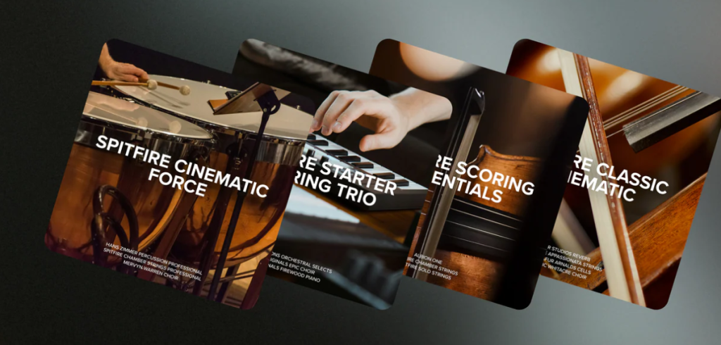 Le collezioni di Spitfire Audio spaziano da sezioni orchestrali complete a suoni di sintetizzatori, effetti sonori cinematici, loop e strumenti singoli, offrendo strumenti adatti a diversi stili di composizione.